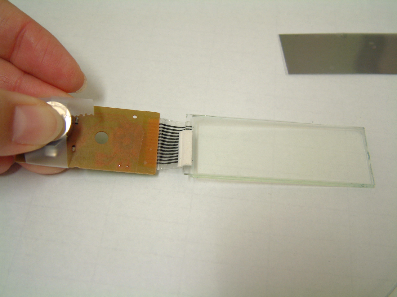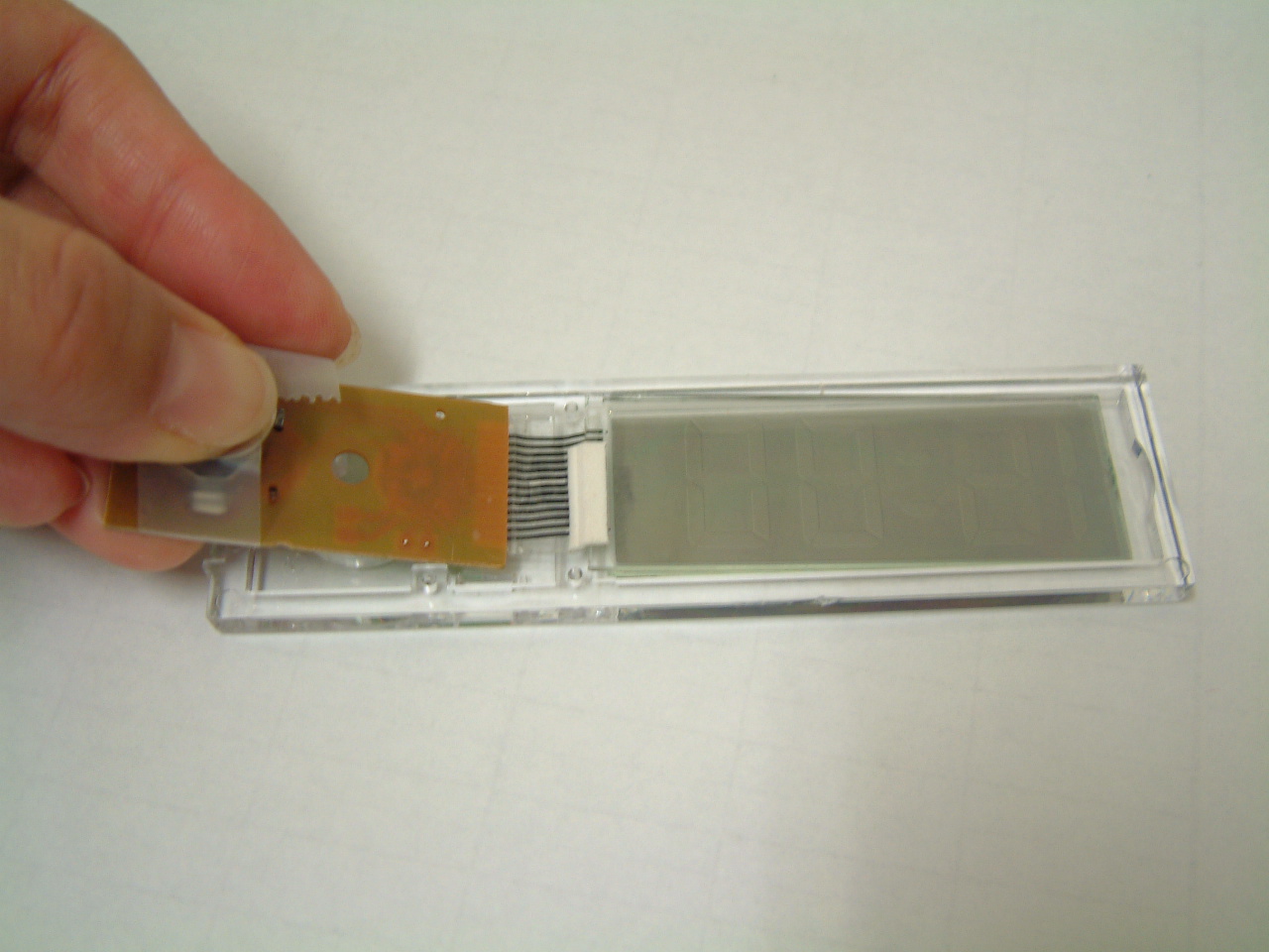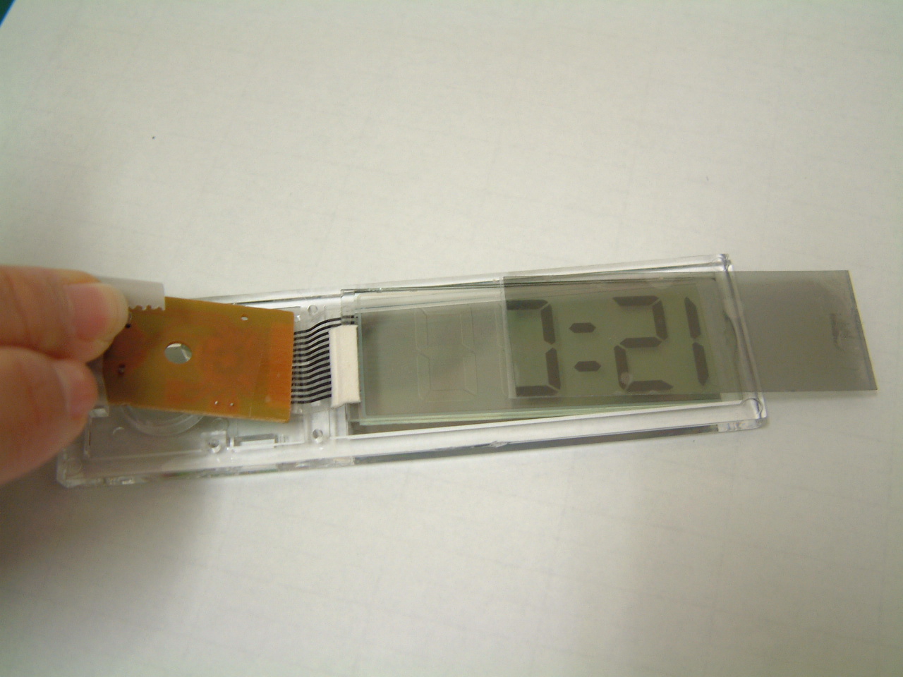 分解してみると、プラスチックのカバー、液晶の入ったガラス板+電子回路部分、カバーの三つに分けることが出来ました。