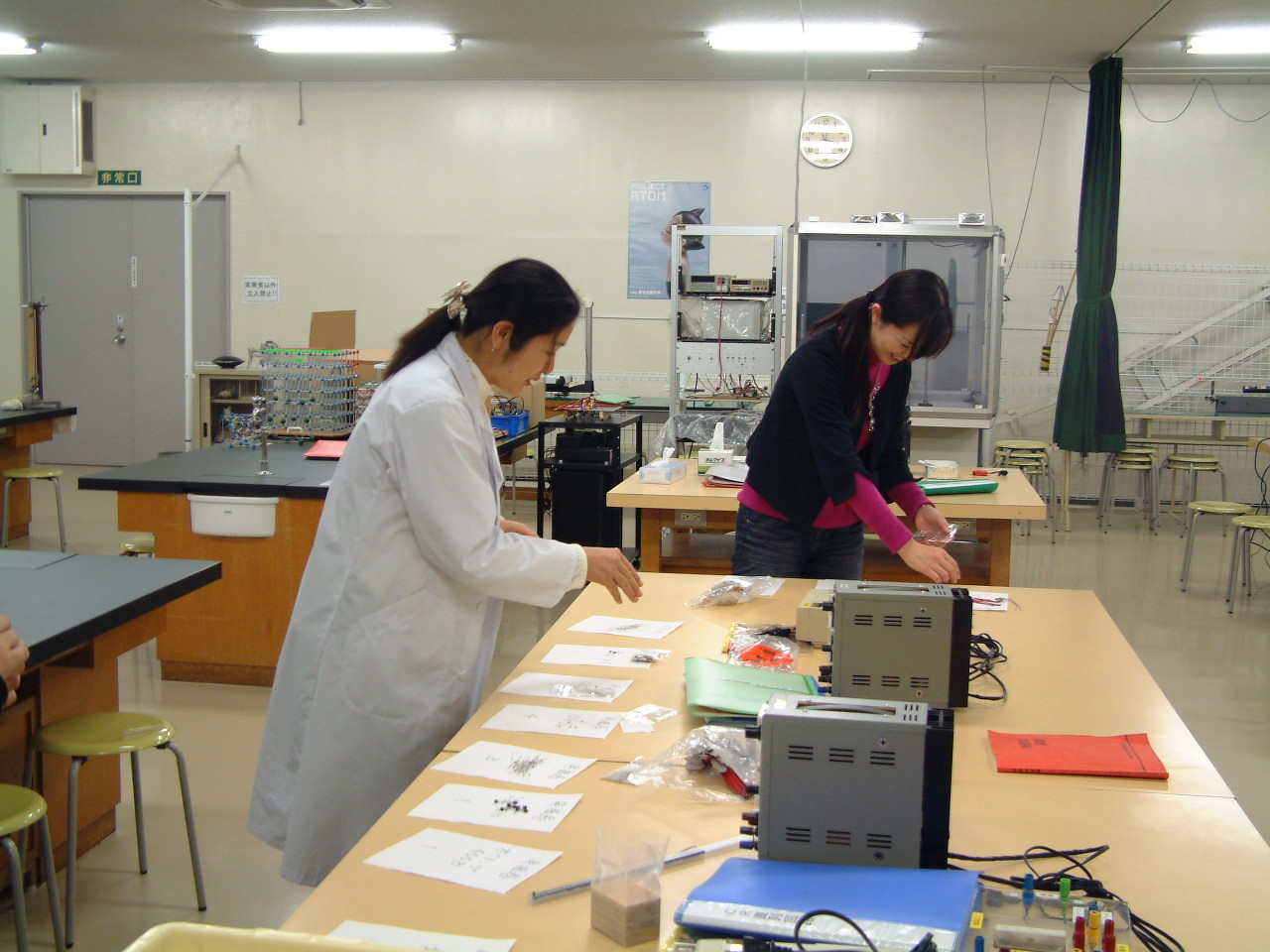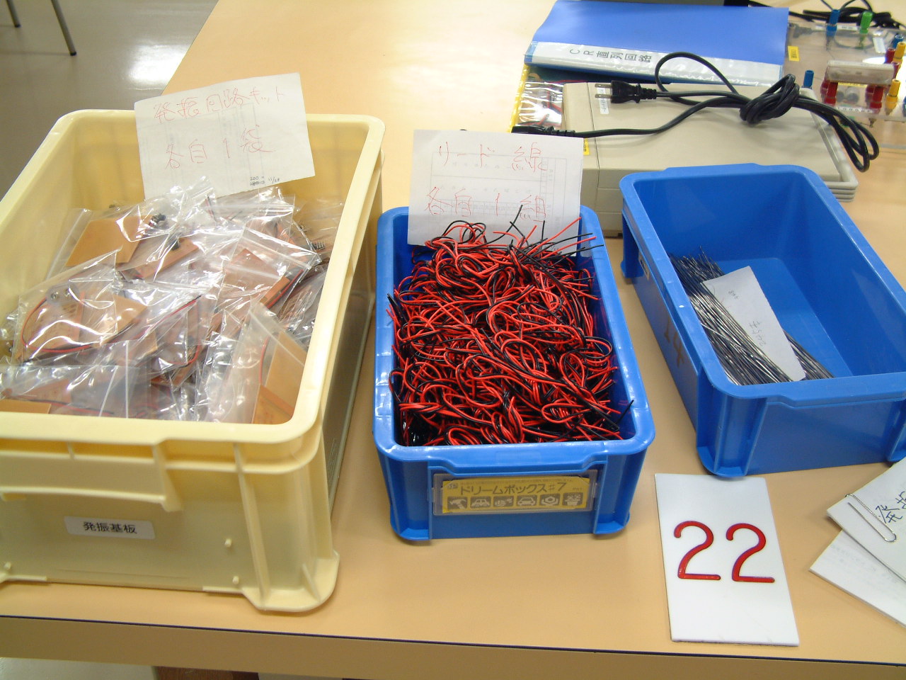 一般物理学実験の最後の授業、ワークショップで使用する電子回路のキットを作っているのです。